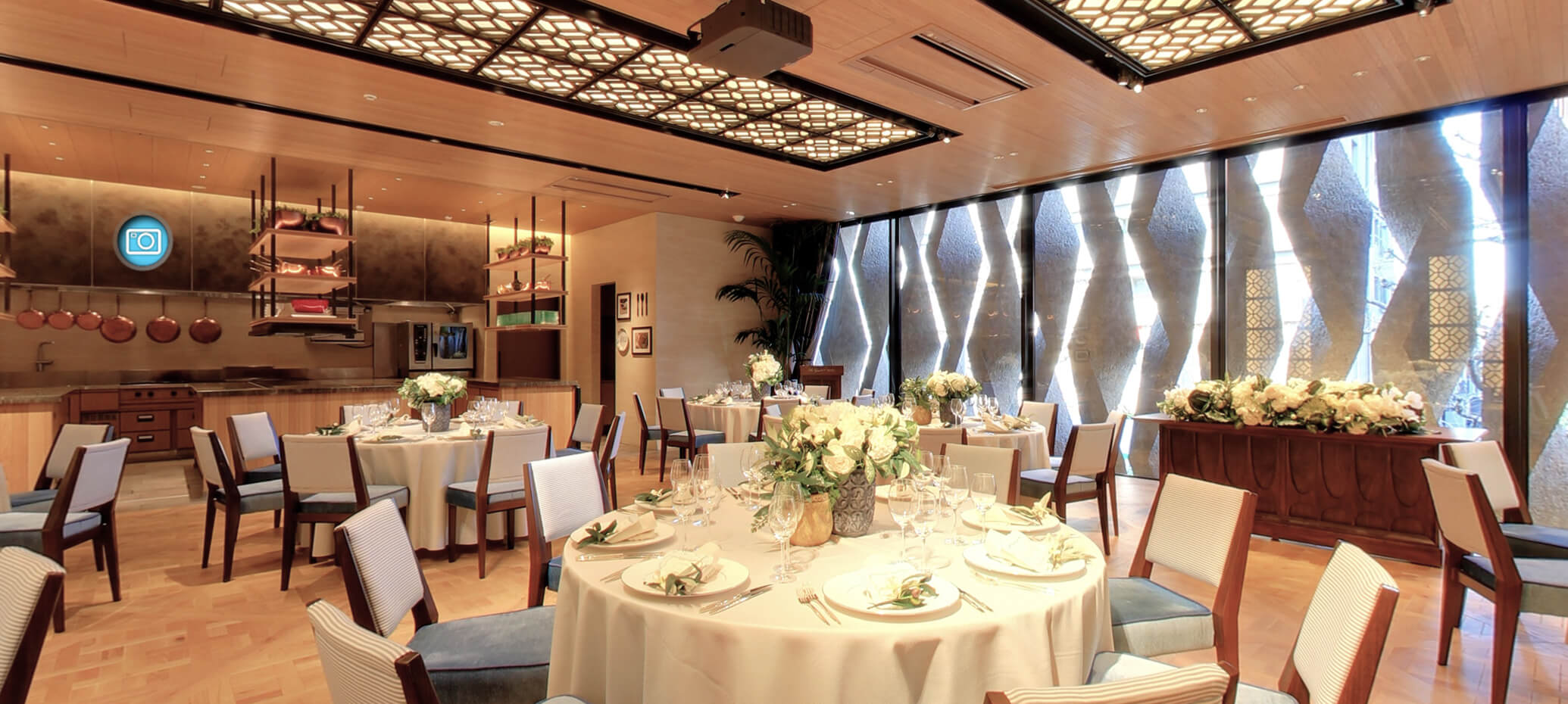 併設のウォークインキッチンによるお料理を通じた演出が、より一層の彩りを添えます。