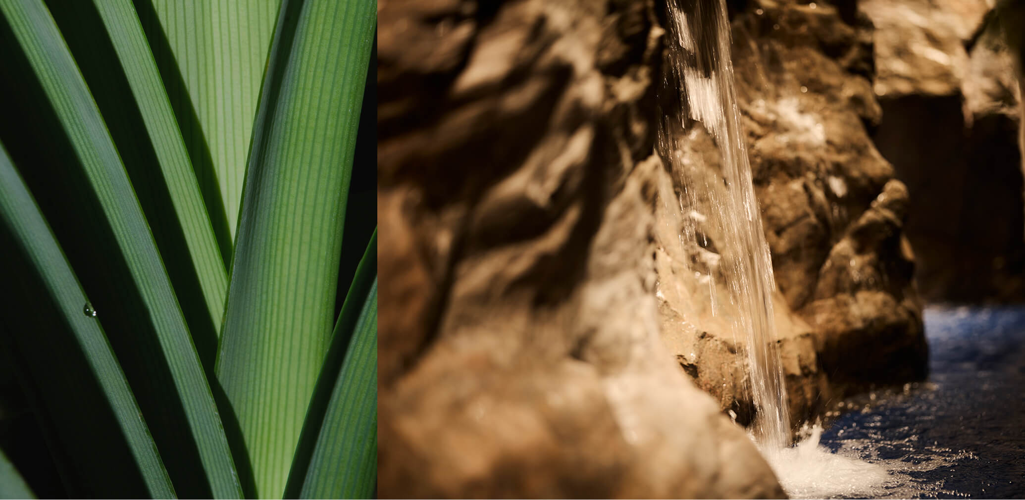 フロアに響く滝の音と柔らかな光をバックに扉を開けば、眼前に広がるのは4メートルもの天井高を誇る開放的な空間。ブラウンを基調とした落ち着きあるデザインが上質な品格を感じさせます。