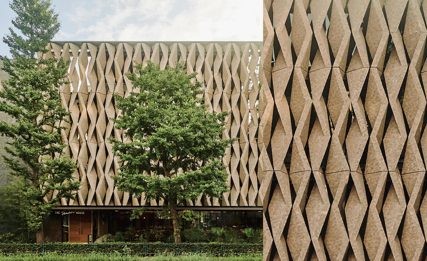 日本伝統の建築意匠「格子」を用いた外観は、風と光をやさしく取り入れながら伝統建築の奥ゆかしさを表現。