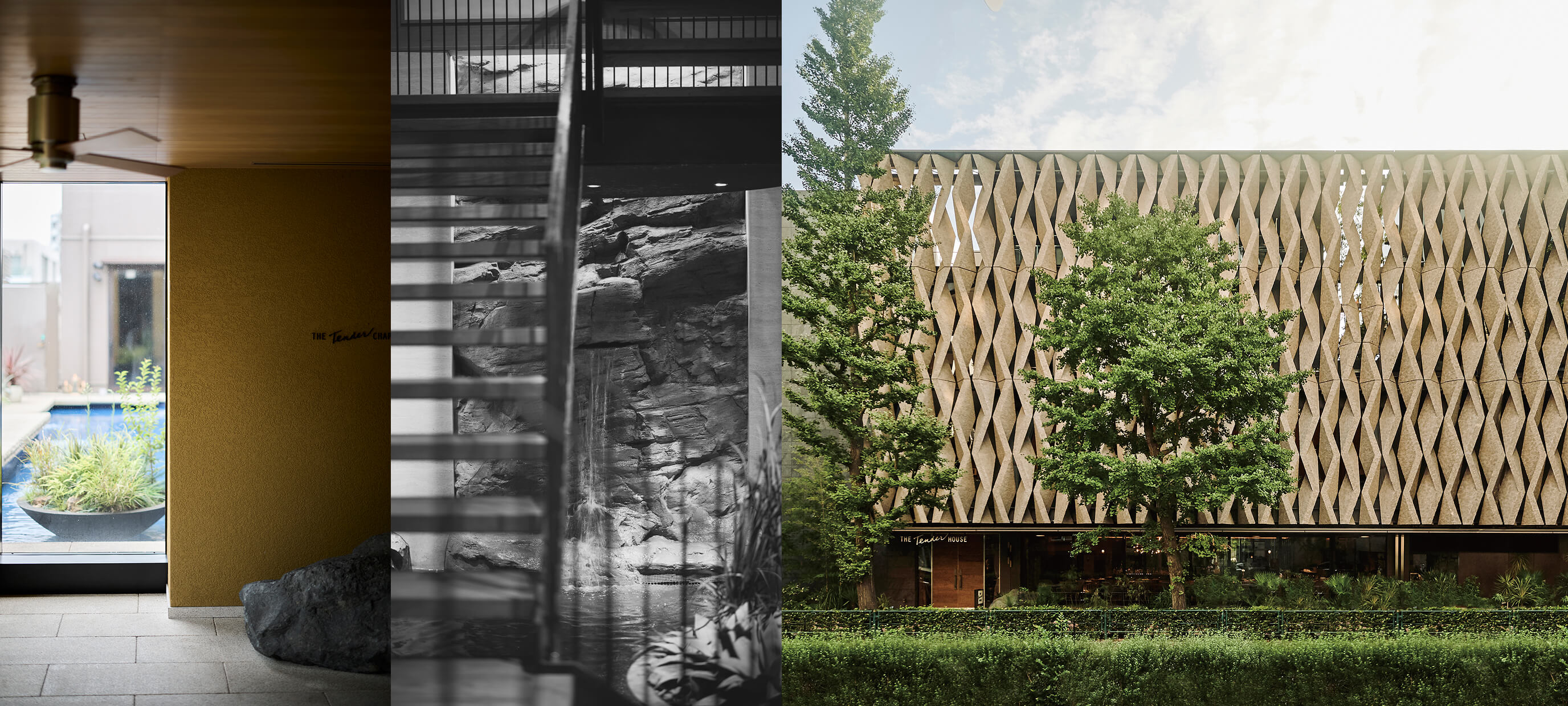 日本伝統の建築意匠「格子」を用いた外観は、風と光をやさしく取り入れながら伝統建築の奥ゆかしさを表現。
