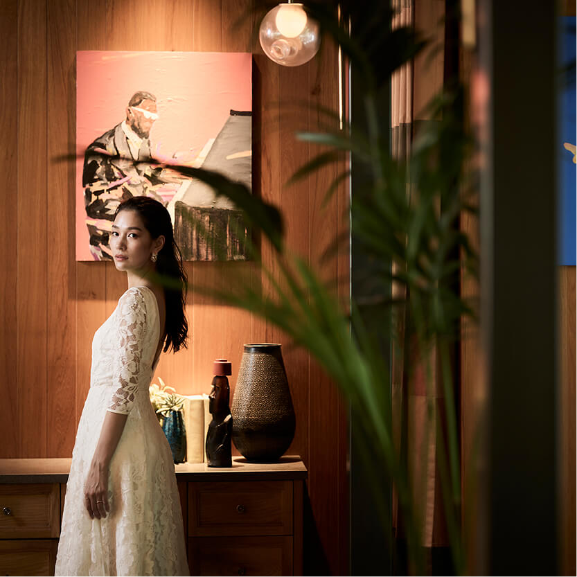 大人の空間に彩りを添えるのは、小澤雅志氏による描き下ろしアート。ヴォーカル、バックバンド、バックコーラスが描かれた絵画が空間を飾り、全体としてひとつのアート作品に仕上がっています。まるで結婚を祝うビッグバンドがジャズを奏でているような、遊び心あふれる大人の世界をお楽しみください。