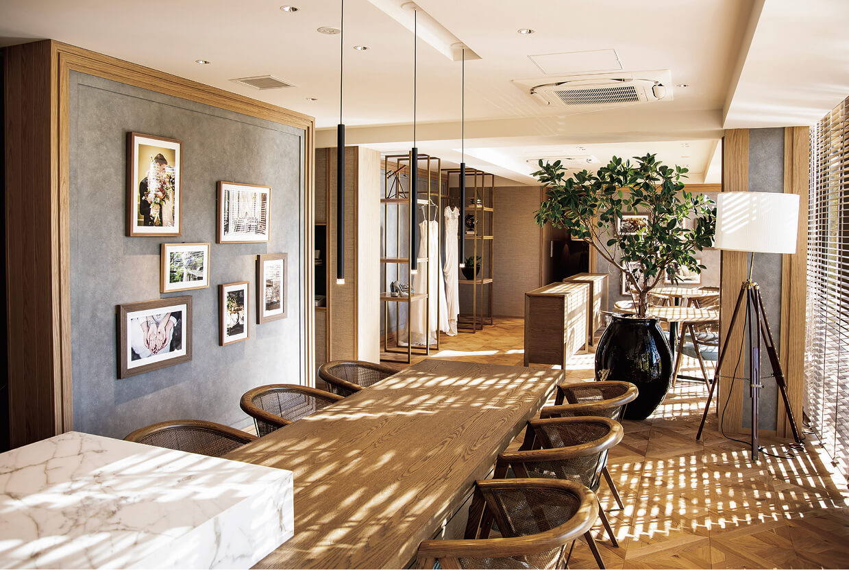 自然に包まれた貸切空間での語らいが、ゲストの緊張をやさしくほぐします。