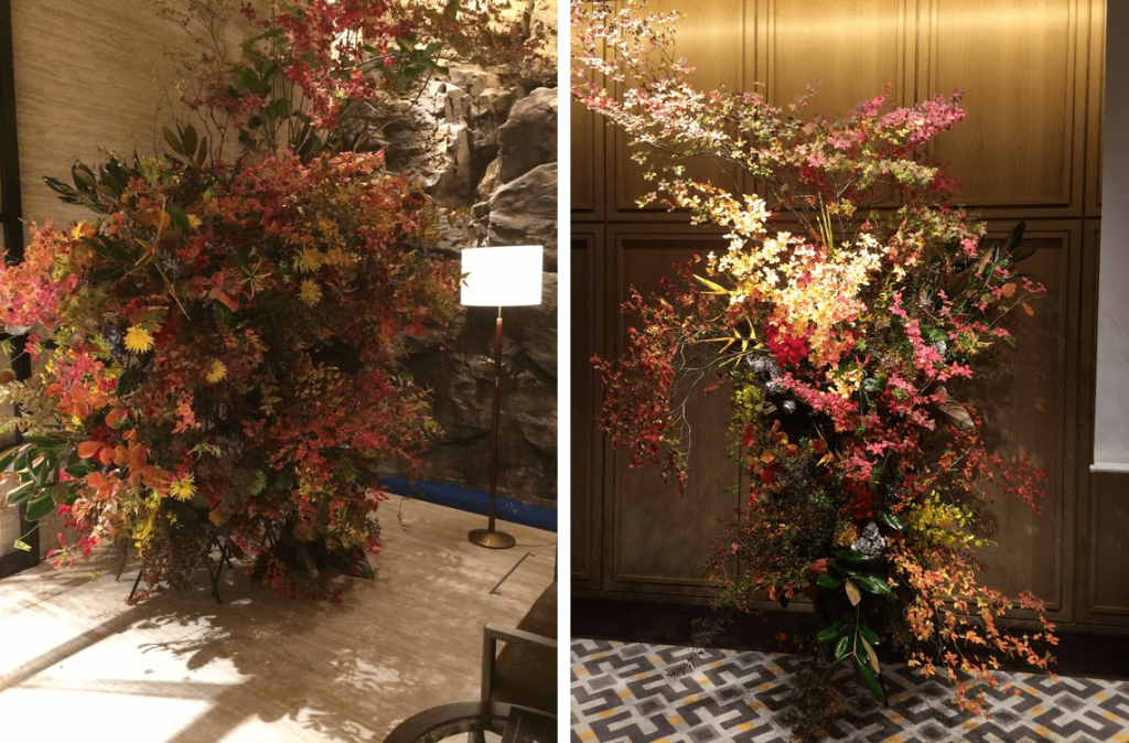 表彰式や記念式典では会場装飾をご要望のお客様が多く、落ち着いた雰囲気の会場だからこそ、装飾の色が映え、パーティーに華やかさや煌びやかさが加わり、お客様からは多くのご好評を頂いております。