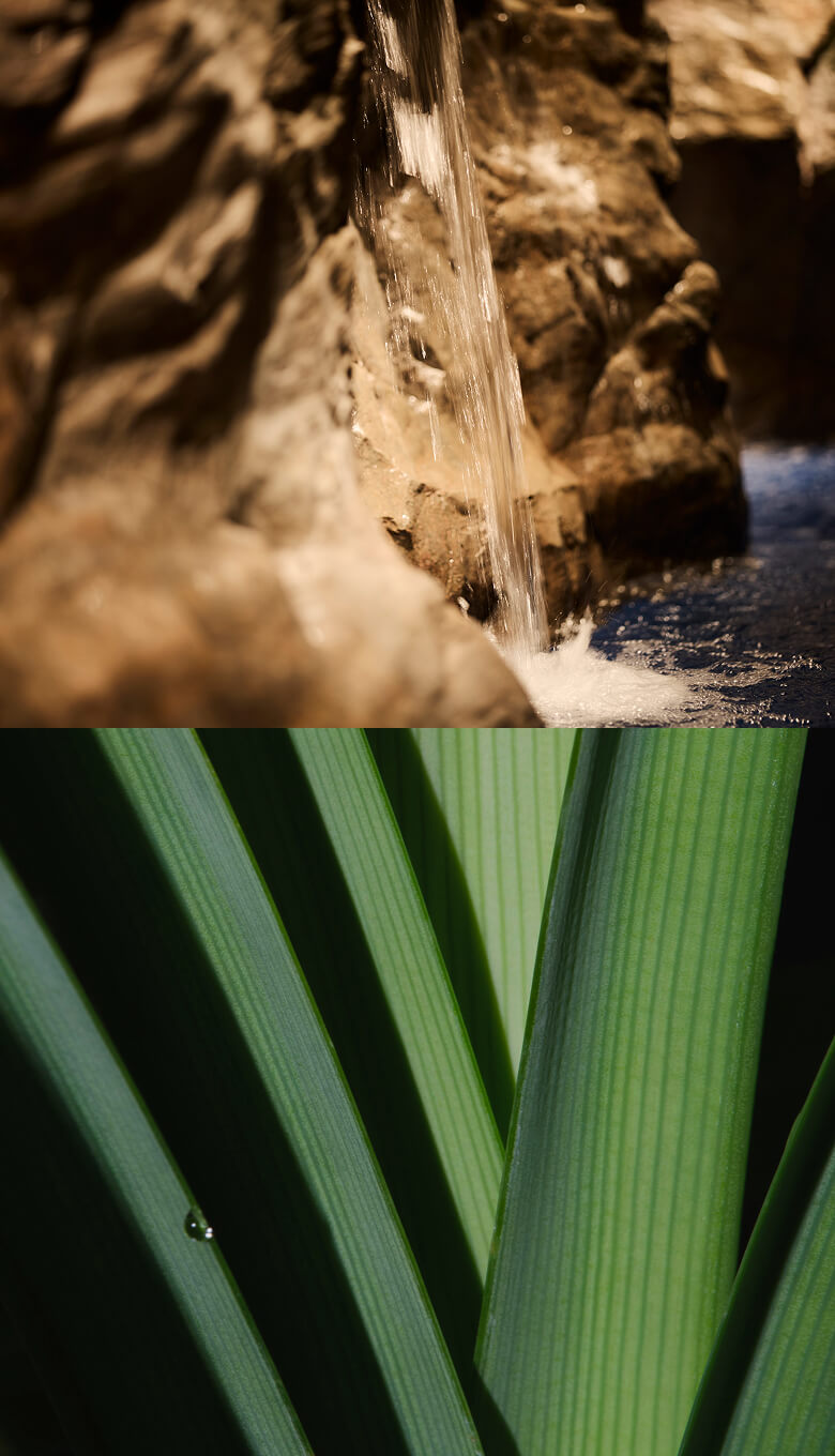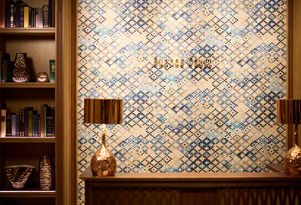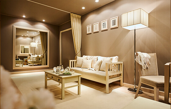 フロアに響く滝の音と柔らかな光をバックに扉を開けば、眼前に広がるのは4メートルもの天井高を誇る開放的な空間。ブラウンを基調とした落ち着きあるデザインが上質な品格を感じさせます。