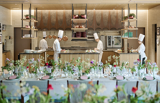 併設のウォークインキッチンによるお料理を通じた演出が、より一層の彩りを添えます。