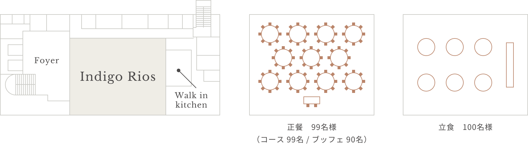 インディゴリオス 2F 300 cm 140㎡ (42) 100 名 60 名 100 名 99 名