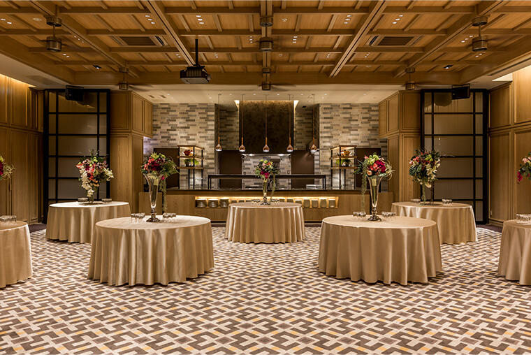 企業パーティー、レセプションイベント、歓送迎会、バースデーパーティーなど、様々な催しに対応。最大125名(着席)まで収容できる広々とした空間や、自然光が射し込む開放的な空間をご利用いただけます。