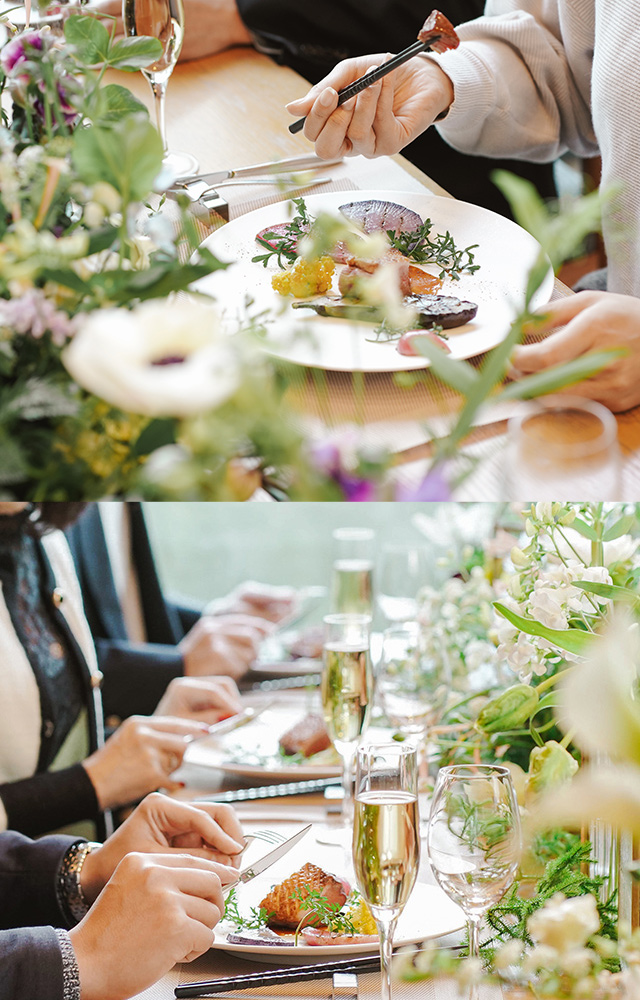 お料理はアラカルトではなく、コースでのご予約をおすすめいたします。あらかじめお料理を決めておくことで、おふたりもご注文のタイミングを気にせず会話に集中することができます。