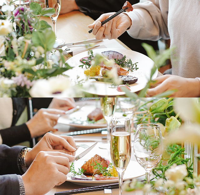 また、お料理はお箸でお召し上がりいただけるものをご用意。親御様世代も、肩肘張らずにリラックスしてお過ごしいただけます。