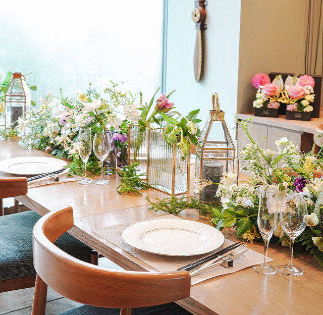 当レストランでは、お祝いの席に相応しいお料理と、ゆったりお寛ぎいただける個室をご用意。和やかな雰囲気の中、お互いを知り合い、これから家族になるための大切な時間を、ここでお過ごしください。
