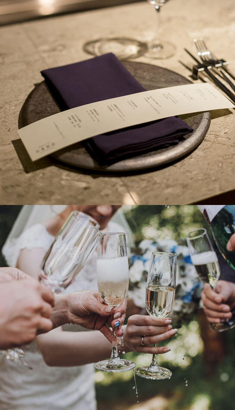 当日の進行、お料理メニューなどをご紹介する”しおり”をご用意いたします。おふたりで作成するお手間を取らせず、全面サポートいたしますのでご安心ください。
