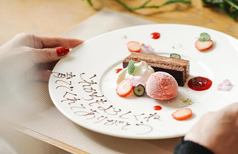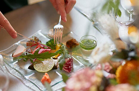 お料理はアラカルトではなく、コースでのご予約をおすすめいたします。あらかじめお料理を決めておくことで、おふたりもご注文のタイミングを気にせず会話に集中することができます。