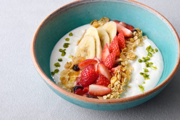 さっぱりとしたグリークヨーグルトとの相性もよく、お好みでハチミツをかけてお召し上がりください。