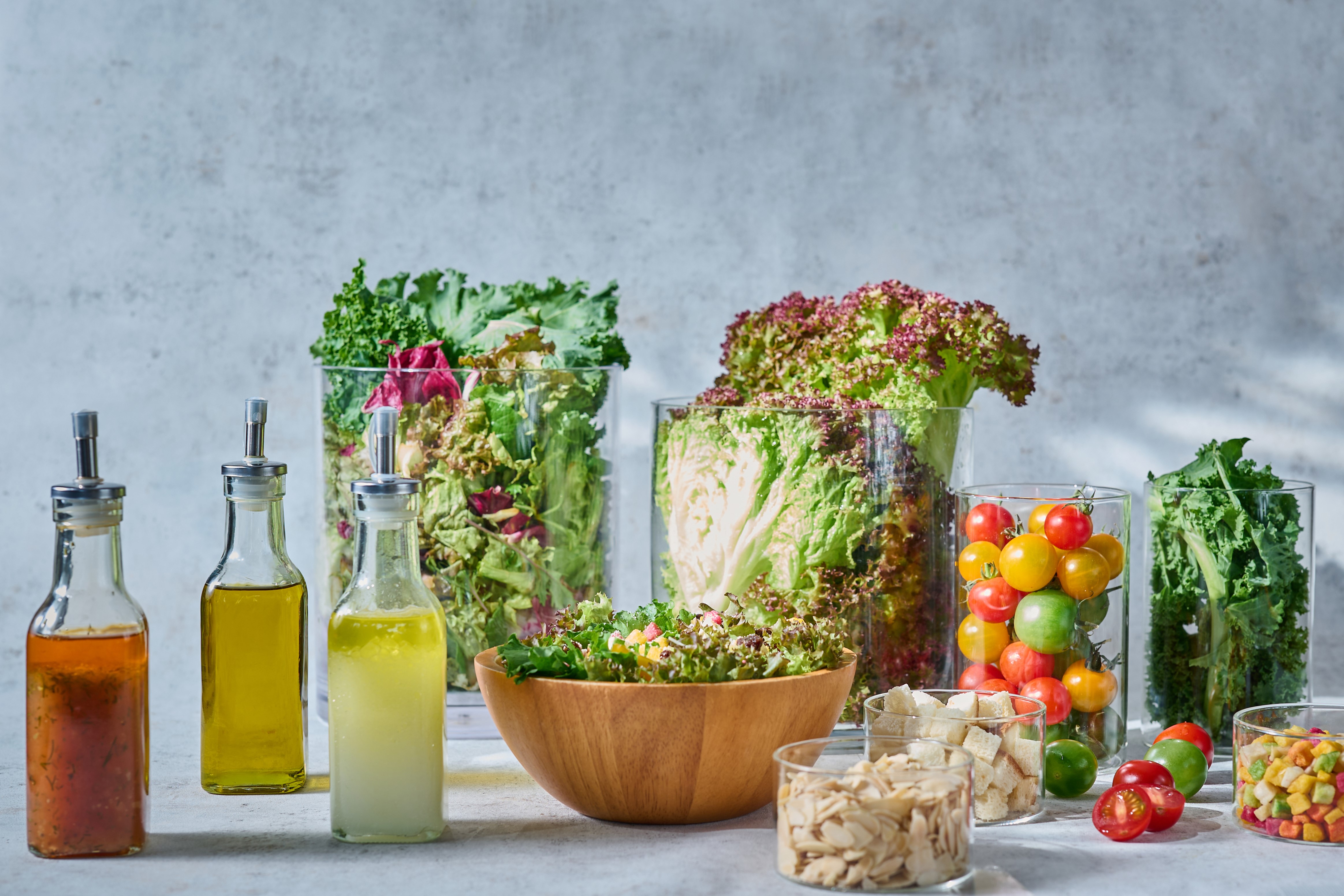 ・サラダビュッフェ 三浦野菜を含む旬の野菜各種、コンディメント(薬味・調味料)、ドレッシング