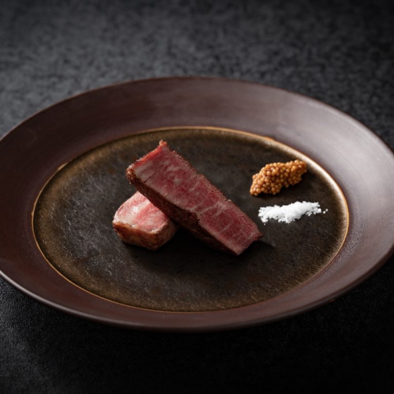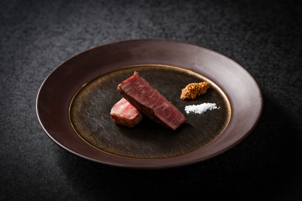 また金華サバや北寄貝、伊達の純粋赤豚など、宮城を象徴する恵みをひと皿ずつ丁寧に組み立てたフルコースをご用意しました。ご接待や大切な会食に最適な個室確約のコースも承っております。