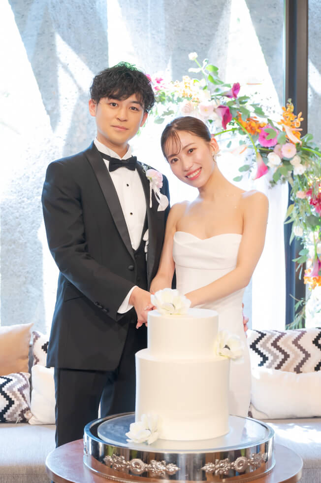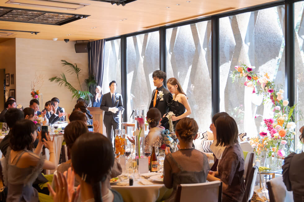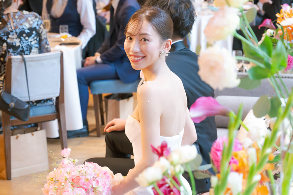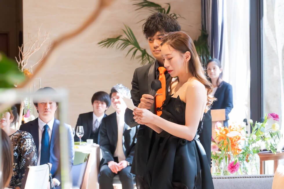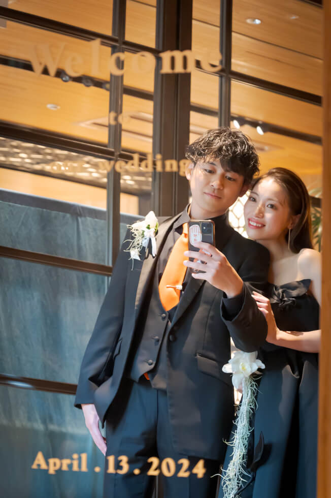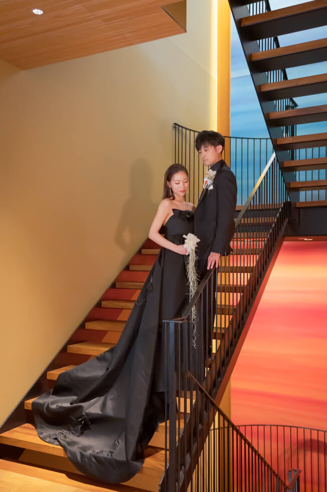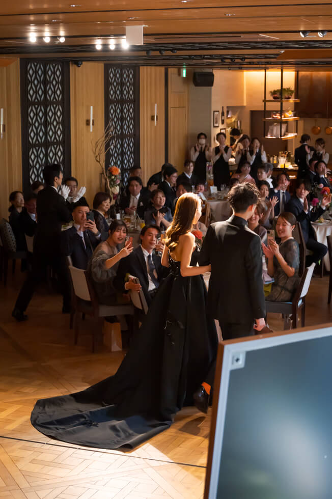 立体的なデザインが特徴のブラックドレスで登場されたご新婦様。