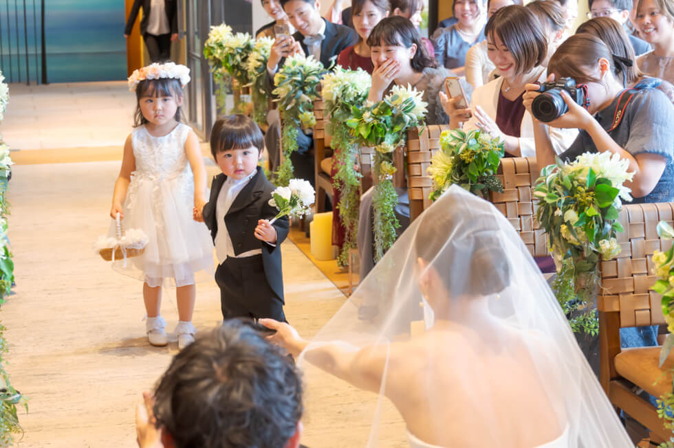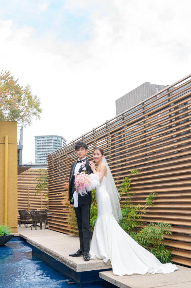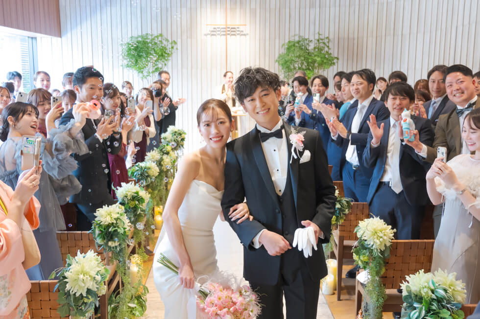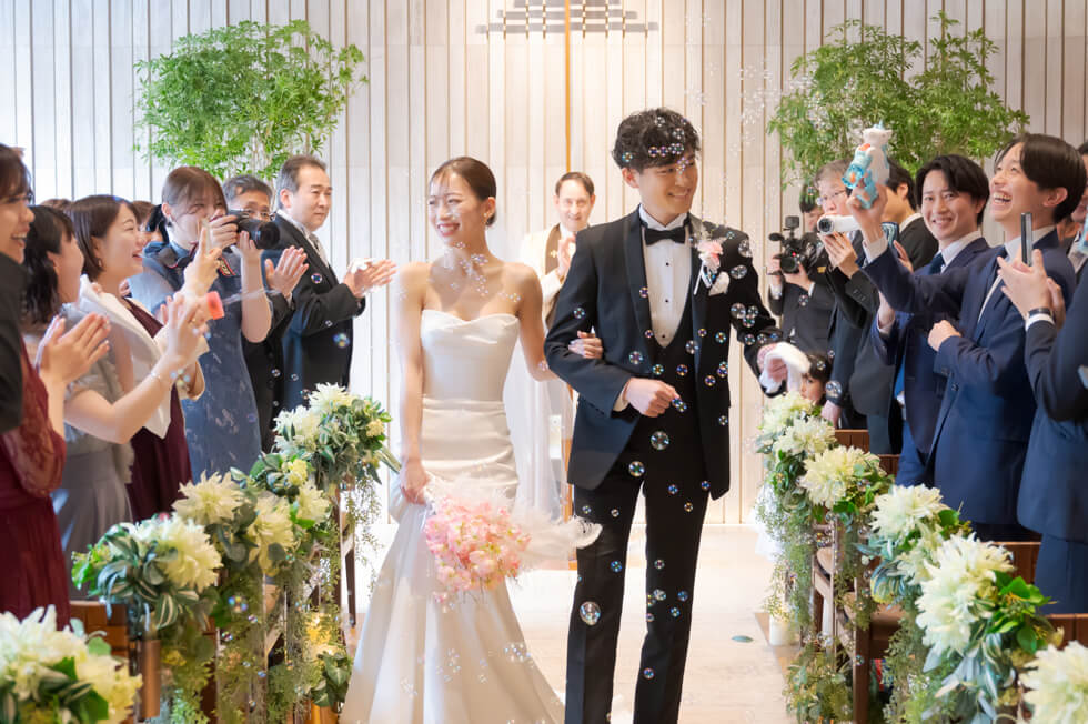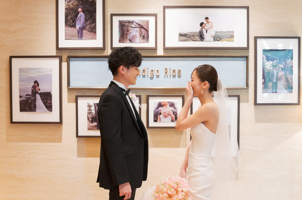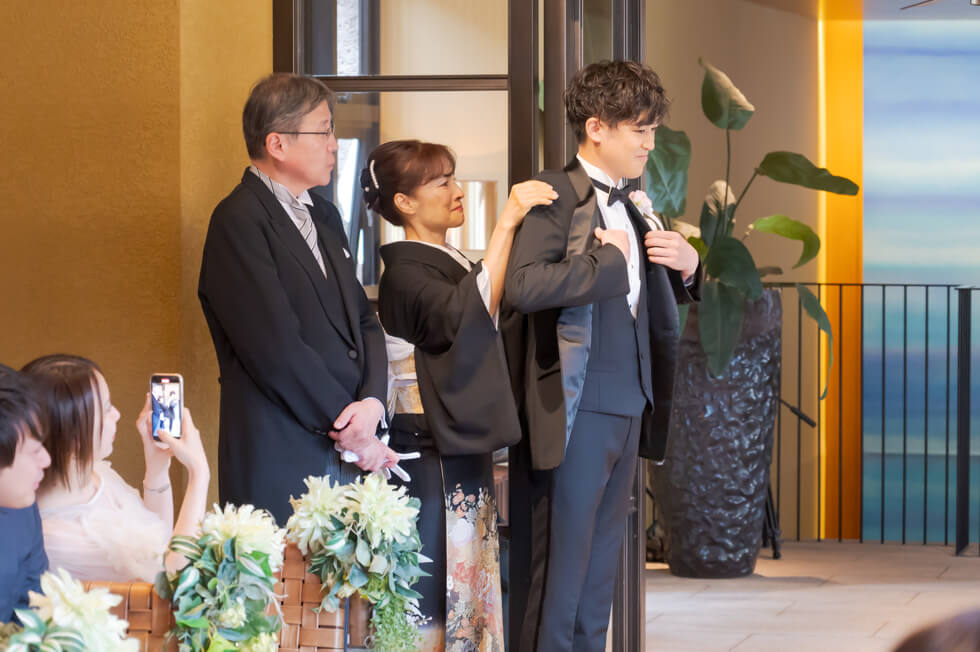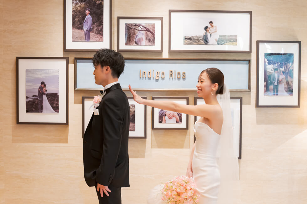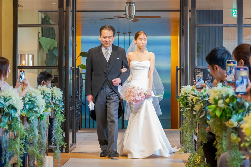 立体的なデザインが特徴のブラックドレスで登場されたご新婦様。
