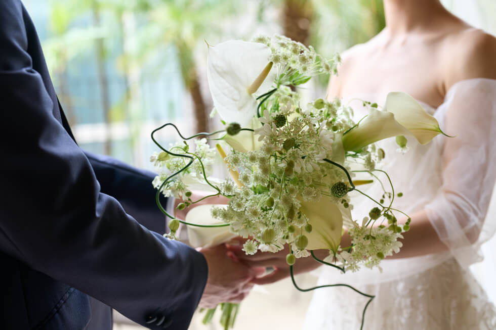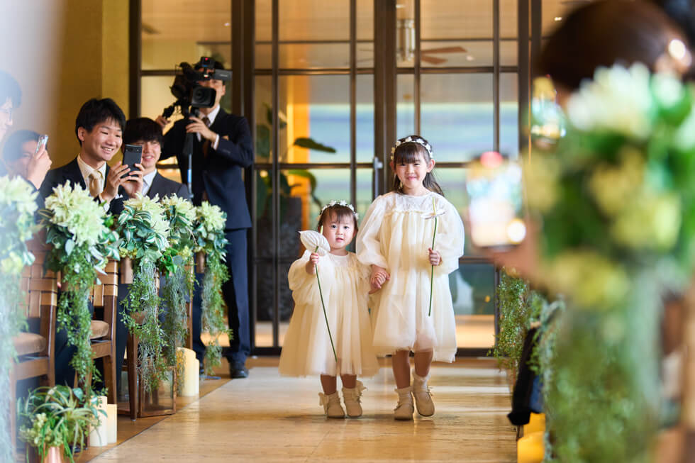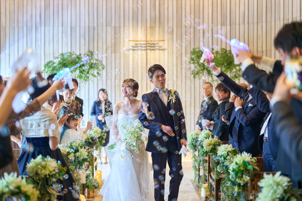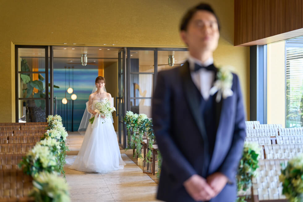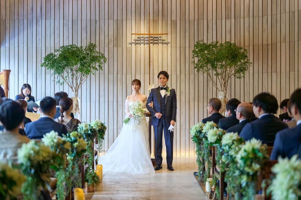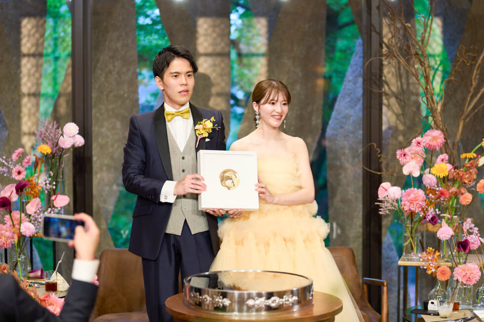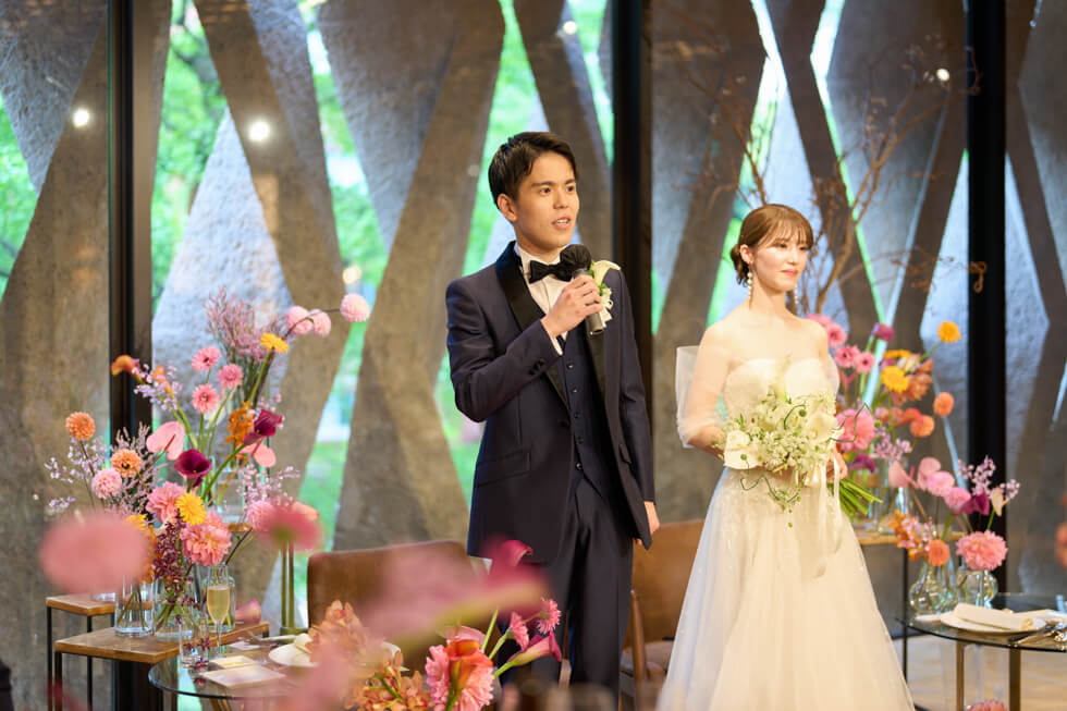 これまでの感謝を伝えたい、ゲストと近い距離で過ごしたいという想いから、挙式は人前式のスタイルを選びました。