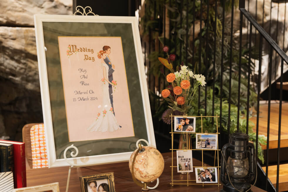 おふたりのパーティーコンセプトは「Reminiscence(of the past)」ご結婚式を機に、過去の記憶に結びつき、懐かしい話で笑顔溢れる会にしたい。会える機会が少なくなったゲストの皆様が「また会おうね」と言えるきっかけをつくりたい。おふたりのご結婚式が過去から未来を繋ぐ、そんな機会となりました。